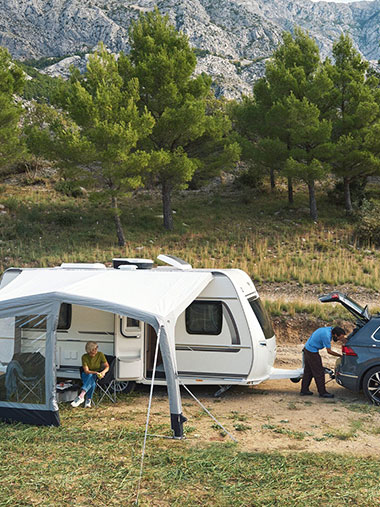 Dank des Einpunkt-Aufblassystems wird das Sonnendach über nur ein externes Ventil aufgepumpt – schnell, komfortabel und effizient. Die Befestigung erfolgt über den Dual-Keder-Anschluss, der eine sichere Verbindung mit Wohnwagen oder Wohnmobil ermöglicht.